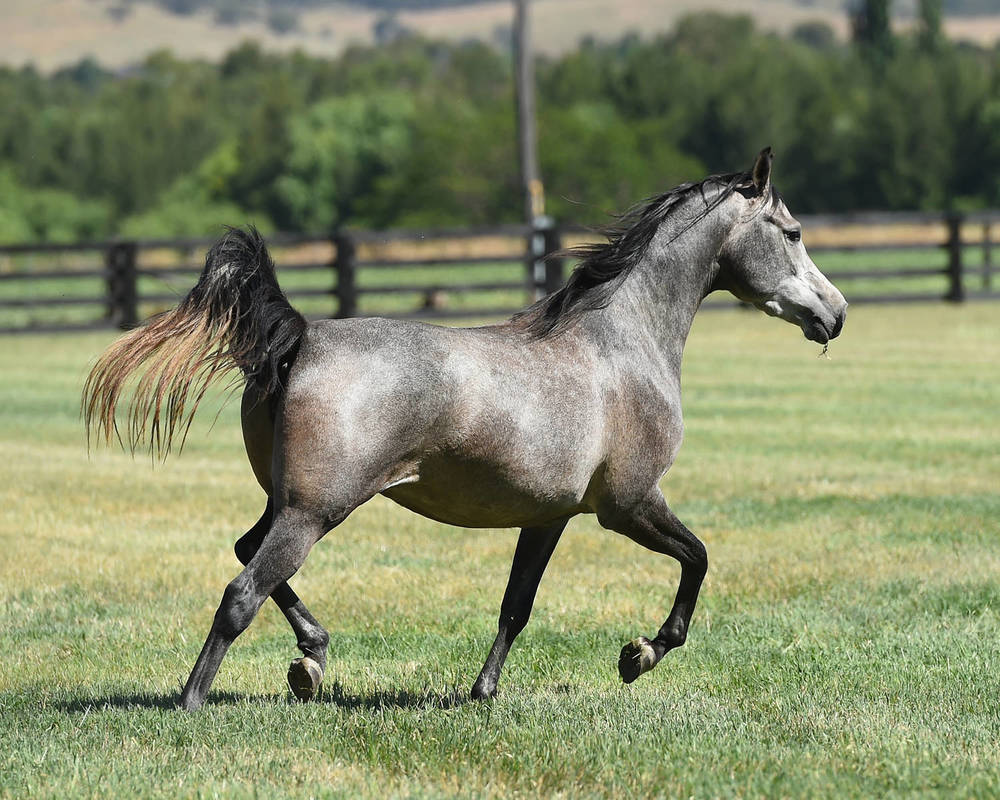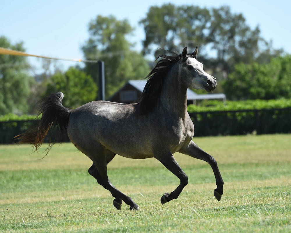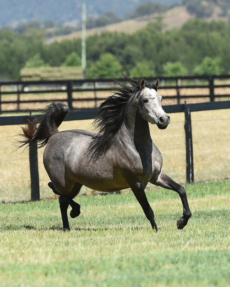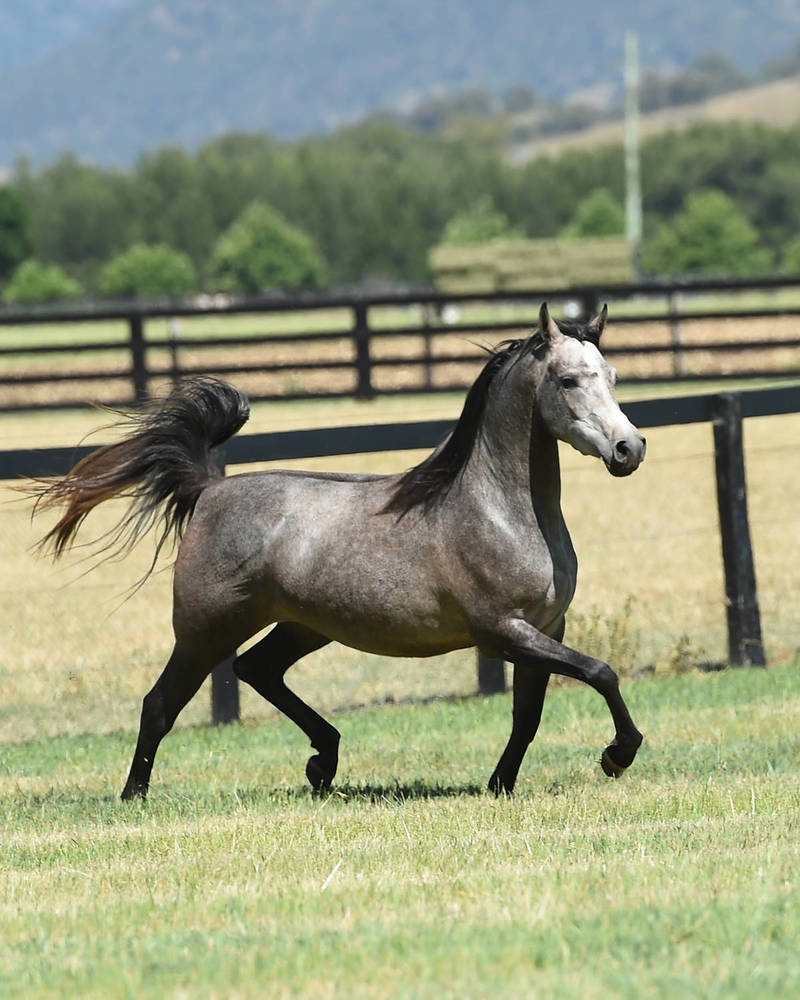 The sire of GRACE MI is EDEN C, one of the most celebrated and accomplished stallions in the international show ring, and universally regarded as the leading son on the late ENZO. With three crosses to the legendary BEY SHAH very close-up in his pedigree, EDEN C has consistently blessed his best foals with size, snort and attitude - all BEY SHAH trademark attributes - as well as refined elegance from PADRON and smooth balance from his Spanish heritage.