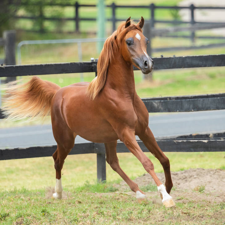 Maternally, HERMES is heir to the incomparable athletic heritage of MULAWA CHANCE through twice Australian National Reserve Champion FAMES HARMONY, an ultra-charismatic icon who has left an indelibly positive influence at Mulawa and beyond. HERMES’ dam, the equally effusive MI HARMONY, is an Australian National Champion & Dam of Distinction herself, who has already produced three champions and counting. Renowned for versatile athletic ability and a natural aptitude for hard work, the MULAWA CHANCE family has produced several of the most accomplished athletes in Australian Arabian history.