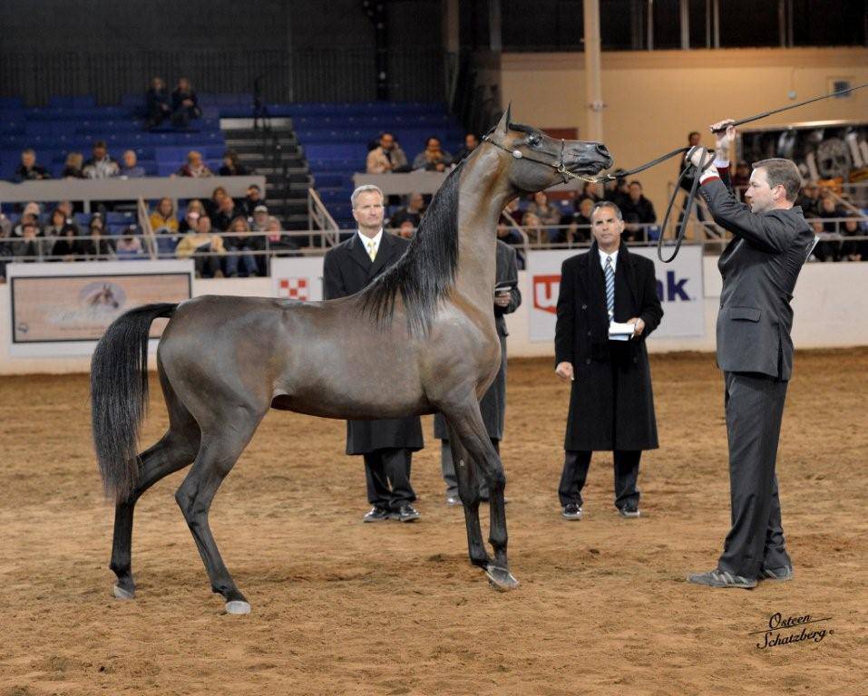Exported to the USA shortly after her first birthday, IMPRESSA has been showing as one the youngest females in her age division ever since. The extent of her impressive show record has all been earned in North America at the most prestigious shows, beginning with a class win at Scottsdale in the Junior Two Year Old Fillies in February 2013, and quickly followed with the very competitive Region 10 Two Year Old Filly Championship in June. Just prior to her second birthday, IMPRESSA scored her first National Championship as Canadian National Champion Two Year Old Filly. This important win was validated just two months later at the United States National Championships, the largest National Show for Arabian horses in the world, as IMPRESSA was honoured as US National Reserve Champion Two Year Old Filly by the slightest of point margins.