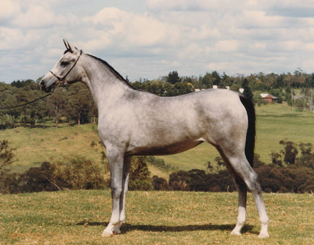 It was primarily the influence of COMET the Farrells were after when choosing GROJEC for TAMIFI, a sagacious decision for which they were rewarded with a lovely bay filly in May of 1974. Named GROJECCA in honour of her sire, she would prove an important foundation mare for Mulawa, crossing exceptionally well with another promising Mulawa import of Polish descent, AMBITION (Bask x Bint Ambara), as well his son, ARRIVAL (x Euni). Intensifying the COMET influence was the primary intention of these matings, as both AMBITION and ARRIVAL’s dam EUNI (Bandos x Eunice) were out of revered COMET daughters. The resulting foals proved positively the wisdom in once again line-breeding the TAMIFI dam family with the best sources of quality, structure and athleticism, as each of GROJECCA’s six foals – four by AMBITION and two by ARRIVAL – proved an accomplished athlete and/or a remarkably predictable breeding horse. Amongst these were PERCHANCE (Arrival), an important foundation mare for Ashbrook Stud who would in turn produce one of Falzon Arabians most important foundation mares MULAWA STARSTRUCK (GLF Apllo), and ultra-versatile MULAWA THE QUEST (Ambition), a multi-Australian National Champion in Working Stock Horse, Ridden Arabian Stallion & Mounted Native Costume, show served as an iconic ambassador for the Arabian for decades at public events all across Australia.