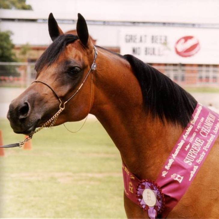 SAHTARAH has proven herself as the dam of several champions, her best by MAGNUM FORTY FOUR. The eldest of these, MUSTANG'S MAGNUM, holds the distiction of being named National Stud Show, East Coast & Australian Champion as a yearling, a first for any horse Down Under. MAGGIE has also proven herself an aspiring dam of great merit, having earned Aristocrat Dam status at just six years of age with four champion produce to her credit.