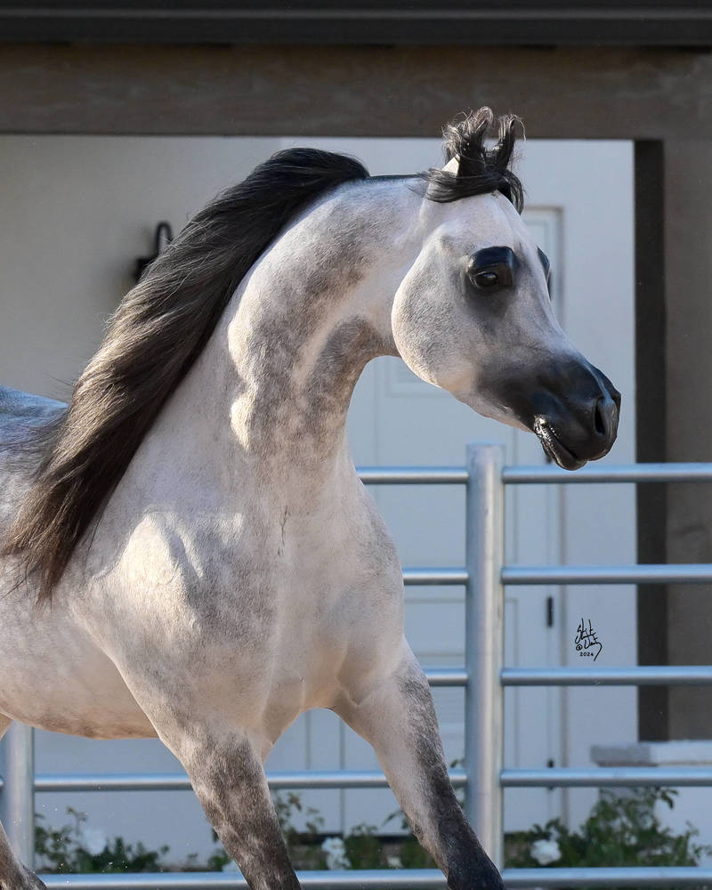 Grey Saqlawiyah Jidraniyah bred by Nahar Az-Zalhubi of the Qumusa-Saba | Arabian Peninsula