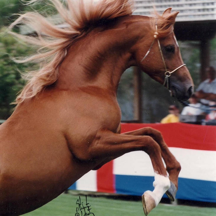 Bred in Michigan by Lori Humphrey of Gaslight Farm (hence the GLF), APOLLO, whose recommendation was one of the many gifts of universally respected horseman Gene Reichardt to the Farrell Family, is a grandson of the legendary PADRON through his influential son DIAMOND PADRON, who combines the invaluable influence of sires of significance SERAFIX, FADJUR, TSATYR, RASEYN, RAFFLES & FADL, as well as the monumental merit of iconic matrons SILVER FIRE, FERSARA, SHARFINA & BINT SAHARA. APOLLO’s dam line is enhanced by two local Michigan sires of enduring positive impact: the predominantly Polish National-winning Park Horse PERCUSSION, and the Straight Egyptian-sired AVATAR AL SUFI, a son of none other than SHAIKH AL BADI, the paternal source of the most successful sires in the Arabian breed at present. Both sires are supported by generations of early American-bred Arabian athletes, all of whom trace their origins back to Crabbet Park, prizes of war obtained in Europe by the U.S. Army Remount, and direct imports from the Arab homeland.