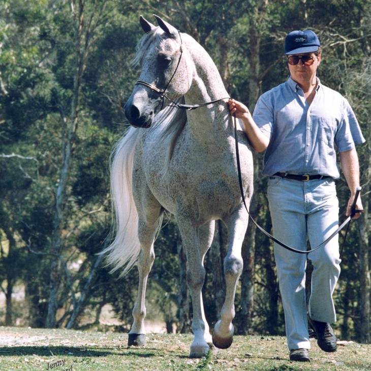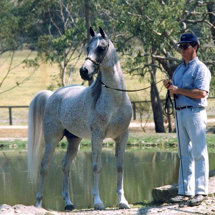 ARRIVAL was a stunning flea bitten grey stallion who exemplified his intense COMET heritage. Never shown and a Mulawa favourite, ARRIVAL proved himself to be a worthy sire, with dozens of champion descendants in both halter and performance. He was very much the image of his illustrious sire AMBITION, with a wonderful temperament and manners.