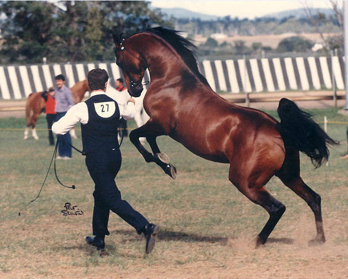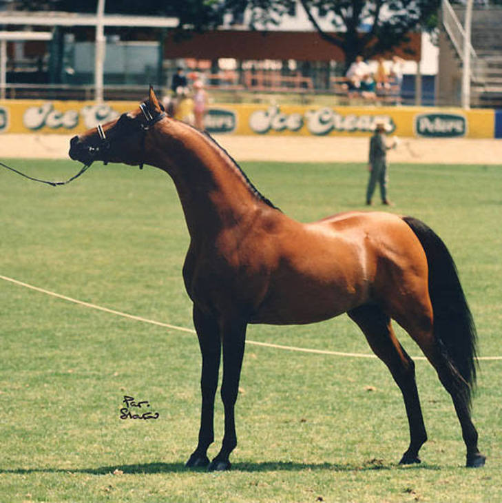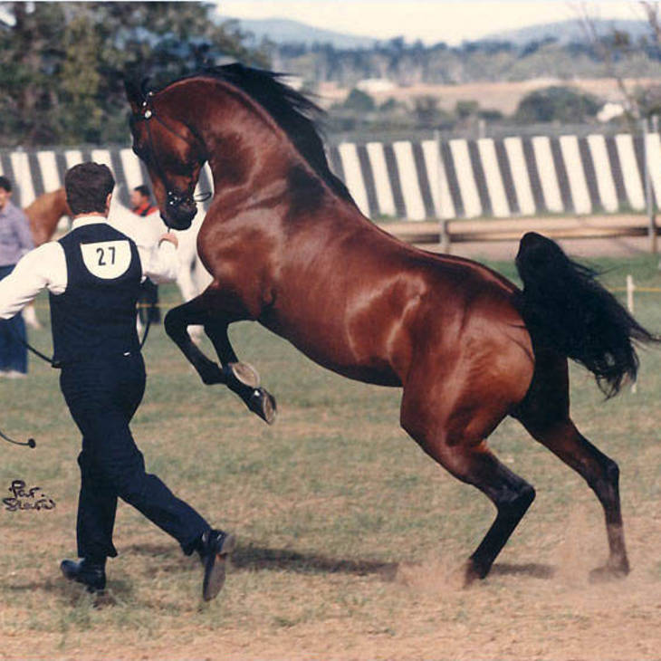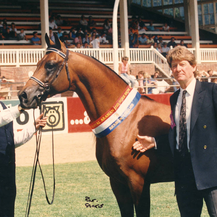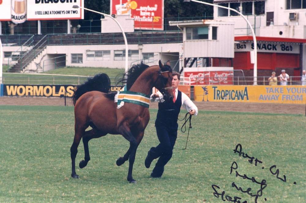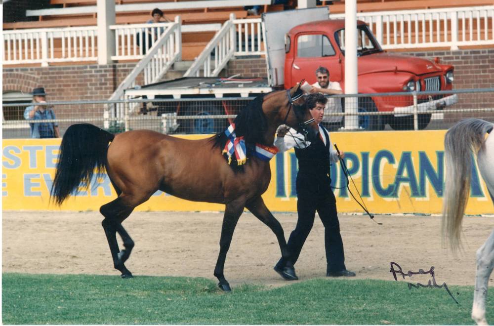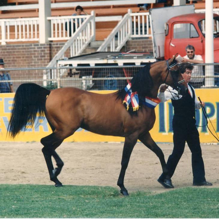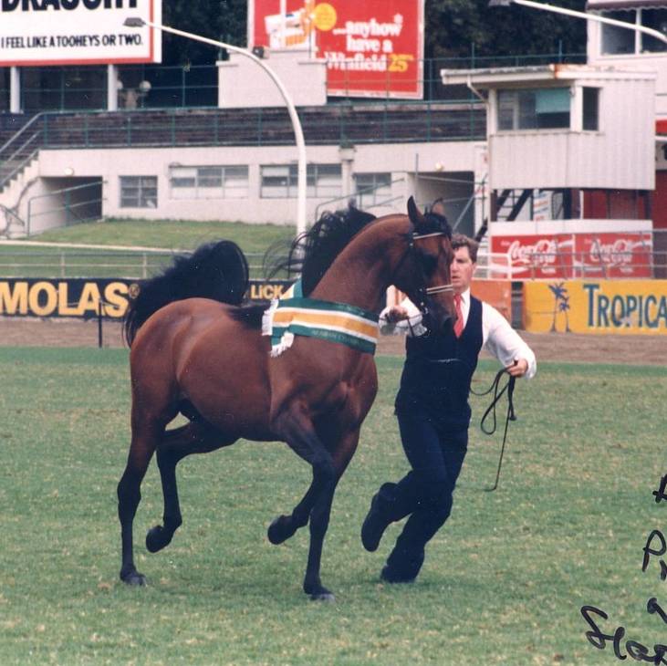 WARRANTY arrived in Australia in 1987 and in November of that year he was judged Champion Stallion and Supreme Exhibit at the New South Wales National Stud show by renowned horseman Kit Hall. The National is the largest All-Arabian show in the Southern Hemisphere and was the third largest show in the world at the time (behind Scottsdale and US Nationals). WARRANTY's performance was electrifying - big, bold and dynamic, he dominated the arena and gathered a crowd wherever he appeared.