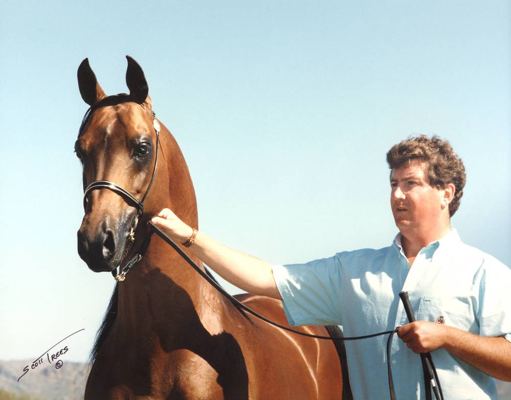 A son of US National Champion stallion ALADDINN and US National Champion mare WIZJA, WARRANTY was an extremely stylish, well conformed individual of great quality, honestly reflecting both his dam’s timeless beauty and show ring brilliance, as well as his sire’s strength and structural integrity. The exquisite WIZJA had been close to the Arabian ideal for Greg Farrell since first seeing her in 1977, as she, in all ways, exemplified the perfect picture of an Arabian mare. ALADDINN's achievements as a sire are, of course, incomparable, the results of which have exalted him to legendary status and recognition as one of the most important sires in the history of the Arabian breed. To have a son of this celebrated and legendary twosome take his place in our breeding program was a dream come true. We first leased, then purchased, WARRANTY from the LaCroix family of Lasma Arabians.