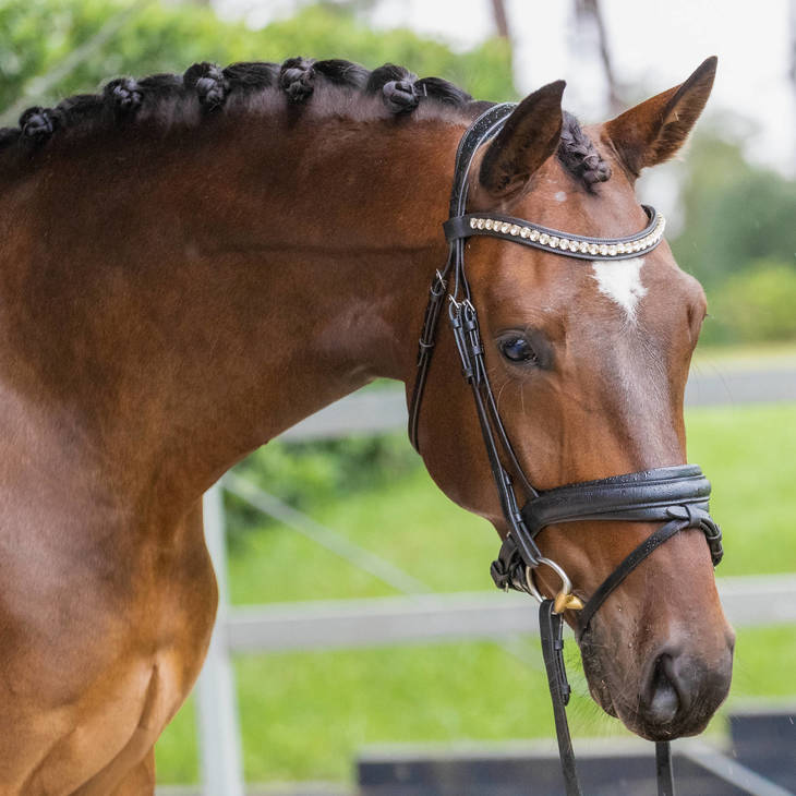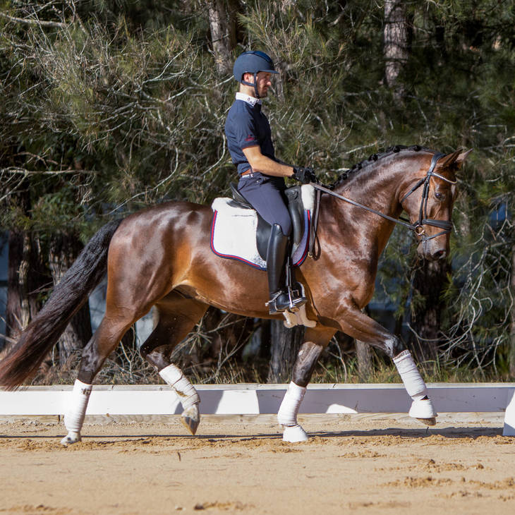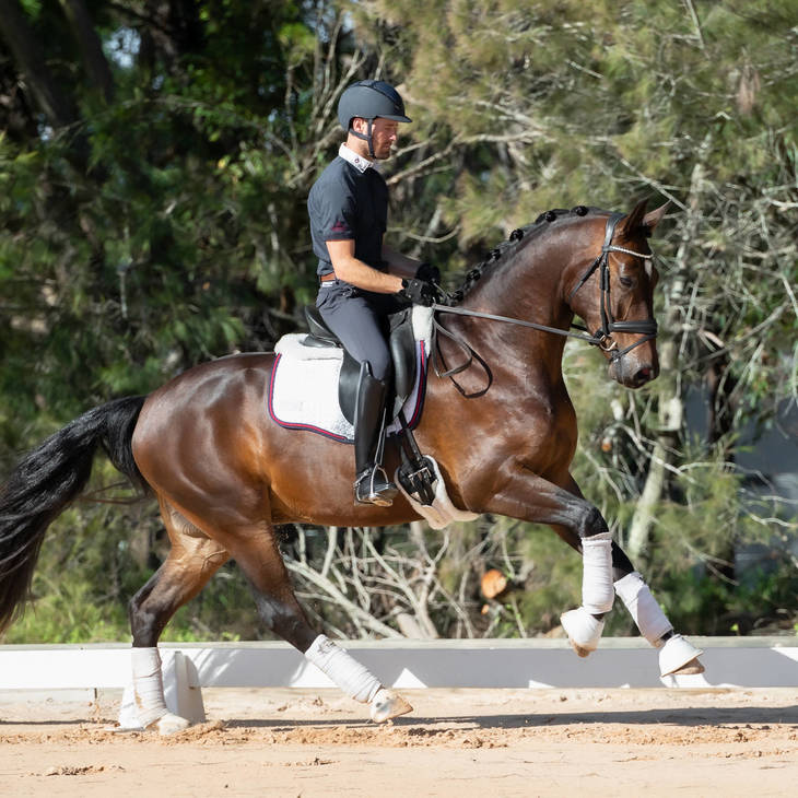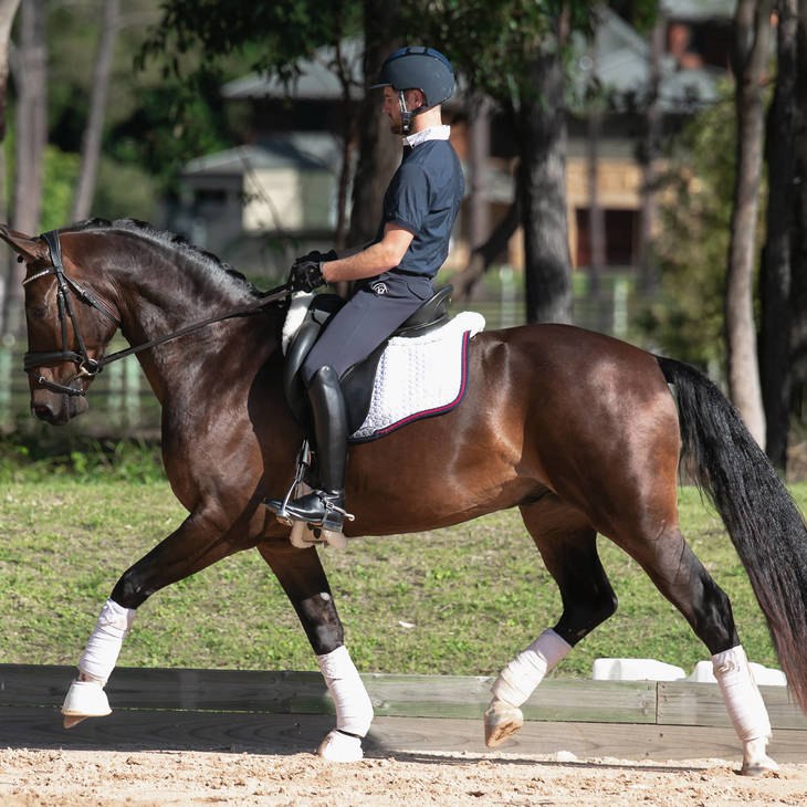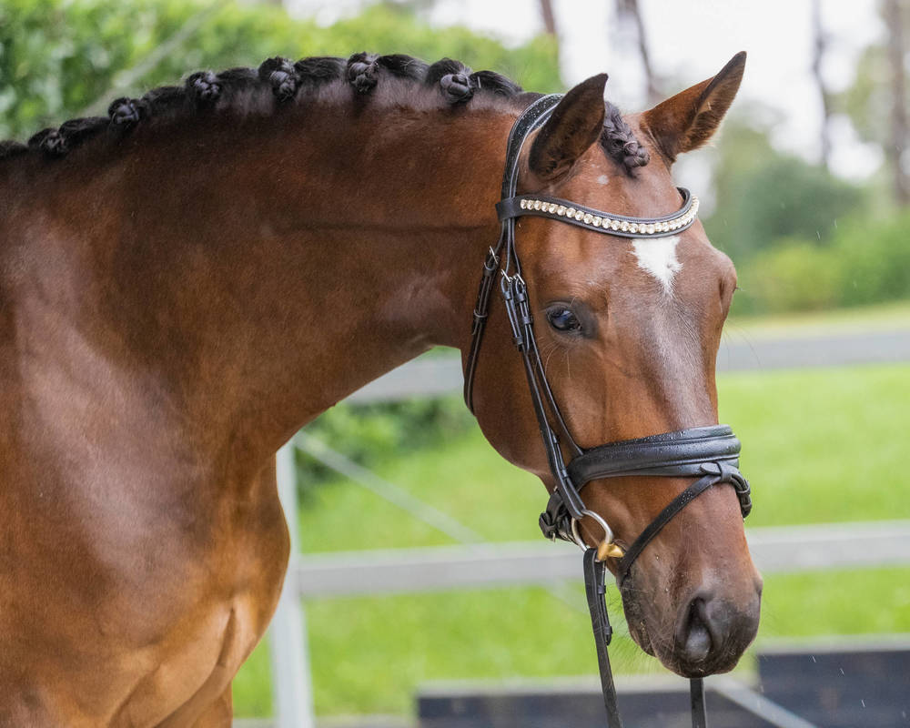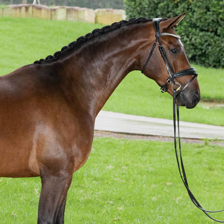 A superbly built and incredibly handsome athlete, Aberdeen MI is quiet, confident and possesses a forward-thinking attitude to match his looks. He shows three naturally consistent, elegant paces and posseses a superb connection in the reins. With an impressive uphill canter, fantastic reaching trot and clear overtracking walk, Aberdeen showcases the best of his pedigree.
